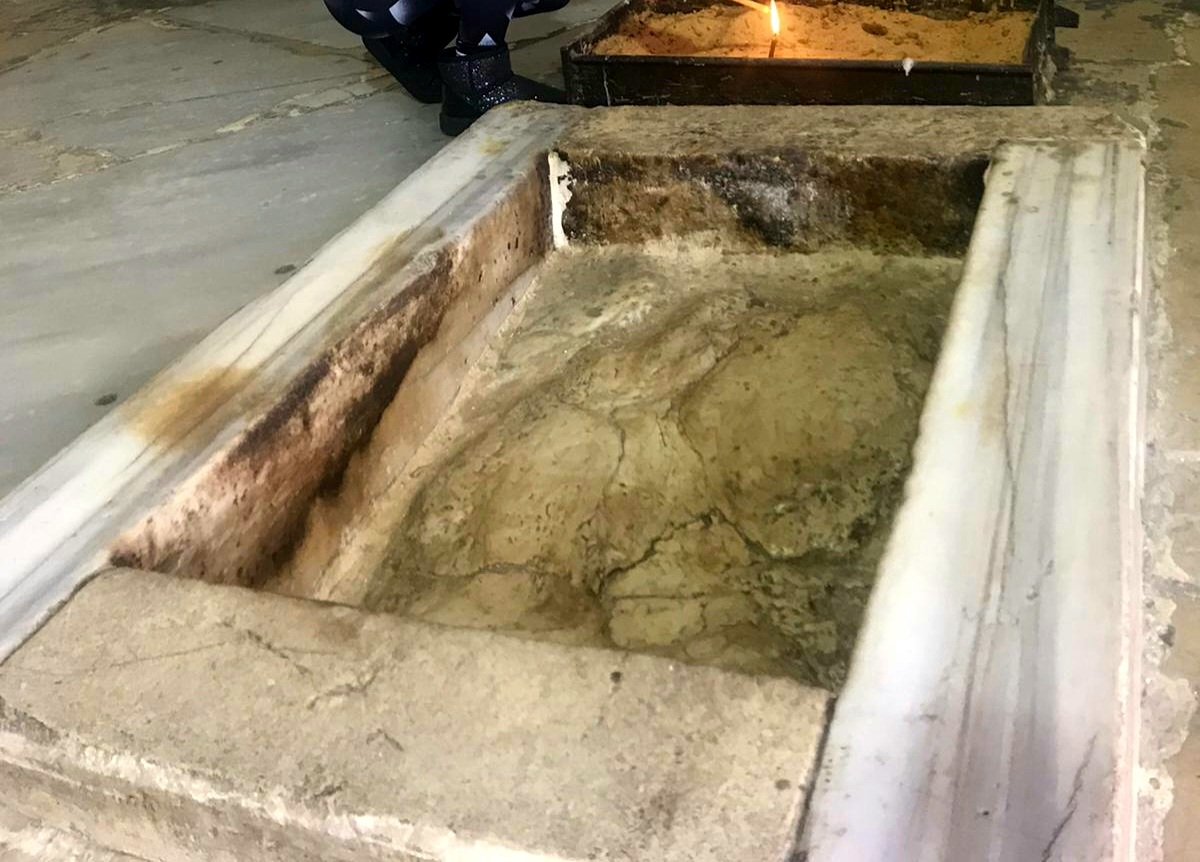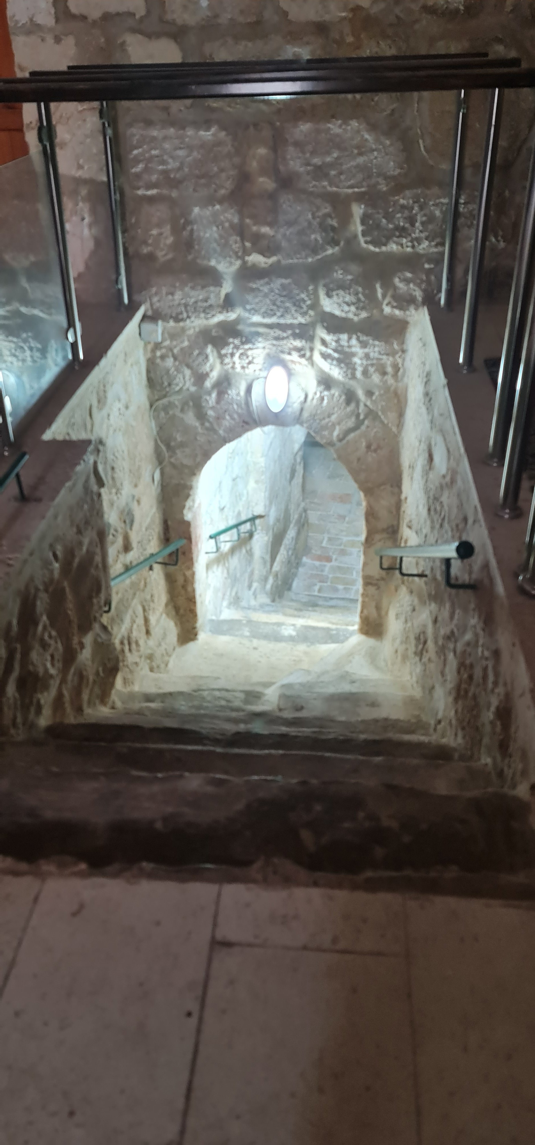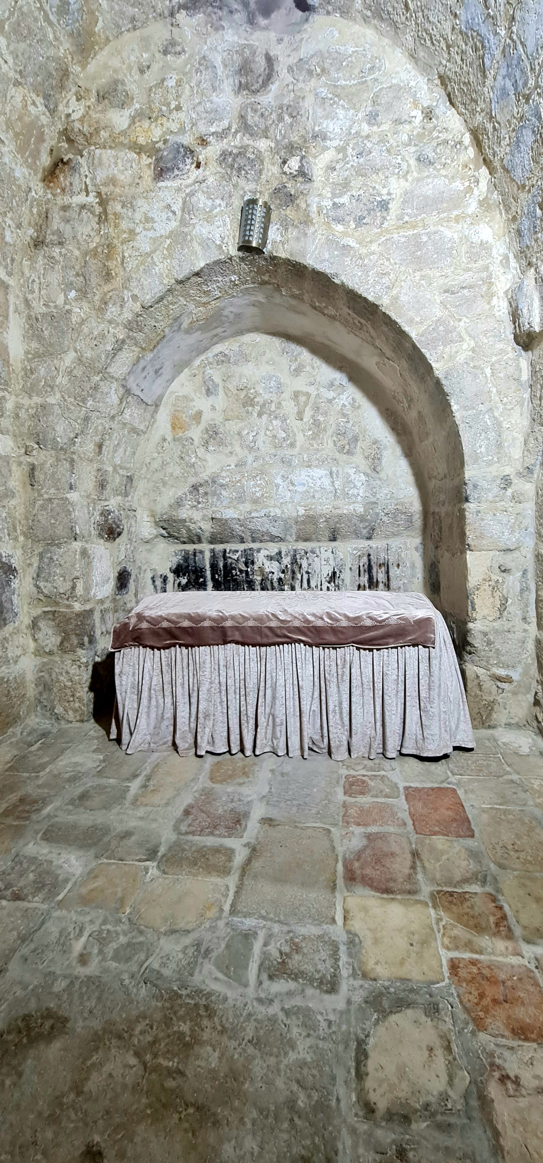 We are now in the house of a Palestinian family at the top of the Mount of Olives. We will visit the tomb of the prophets, which were discovered in their garden many years ago. It’s quite creepy because this cemetery has a history of 2500 years. We go down the stairs leading to the bottom of the ground. There are about 50 graves inside. It is believed that this tomb belongs to the prophet Zechariah.