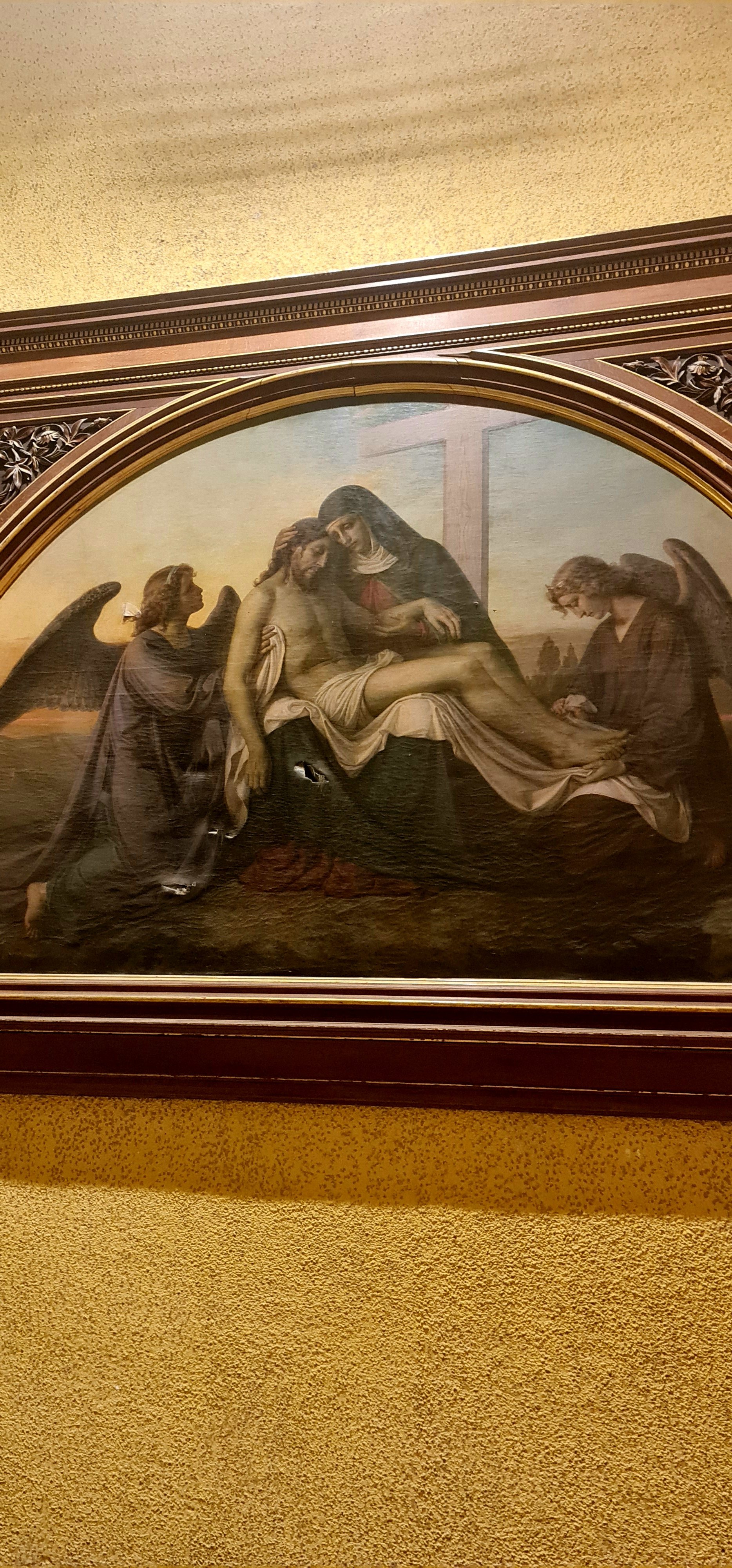 After Jesus was crucified and breathed his last, a great storm broke out. Everyone was afraid and ran away. Only Mary, the mother of Jesus, Mary Magdalene, and Salome remained. They take Jesus down from the cross, wrap his body, and put him in a big pit and close the pit with a stone and leave from there. After a while, Mary Magdalene comes to the pit where they put him to apply scented oils, but the body is not inside. Suddenly an angel appears and the angel Jesus Christ. Mary Magdalene comes to the place where you will see the picture below, trembling and sees Jesus here under a beam of light, she falls at her feet and starts to cry. Bible Matthew 27,28; Mark 15,16; Luke 23,24