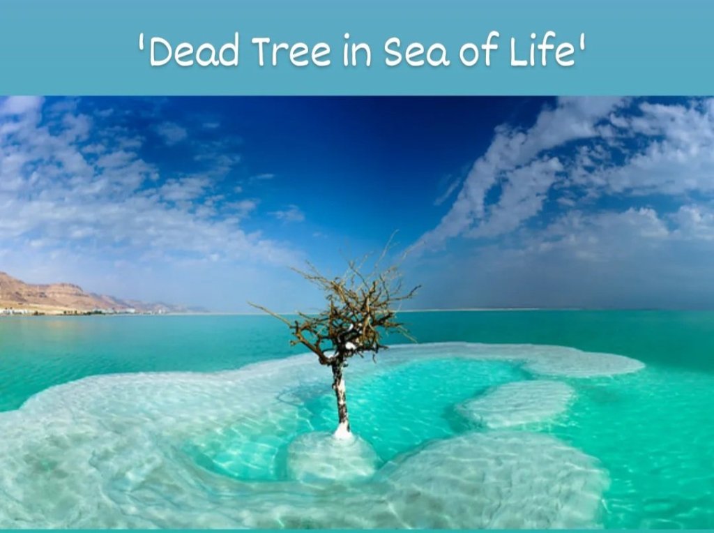 Fakat yakından bakınca bunun gerçek bir canlı olmadığını farkediyorum ve biraz araştırınca da bunun Arad şehrinde seyahat rehberi olan Amiram Dora’ya ait bir enstalasyon sanat eseri olduğunu öğreniyorum:) ‘Dead Tree in Sea of Life’ (Yaşam denizindeki ölü ağaç ) ismini verdiği bu çalışmanın amacı; Ölü Deniz’in bilinen isminin aksine aslında zengin bir turistik aktivite, şifa ve dinlenme yeri olduğunu göstermekmiş.