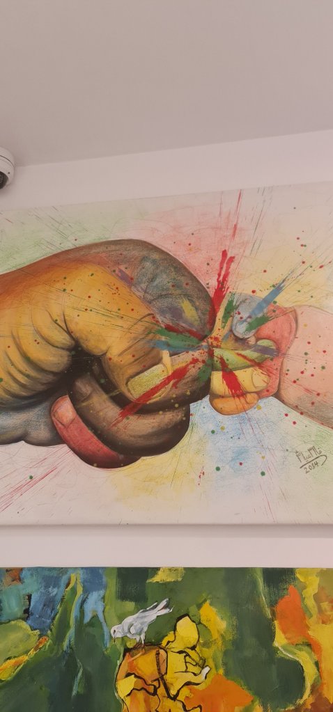 Oteli 3 bölüme ayırarak yazmalıyım. İçeri girer girmez sizi karşılayan cafe-bar , Filistin tarihini anlatan dramatik bir müze ve Banksy eserlerinin sergilendiği sanat galerisi.