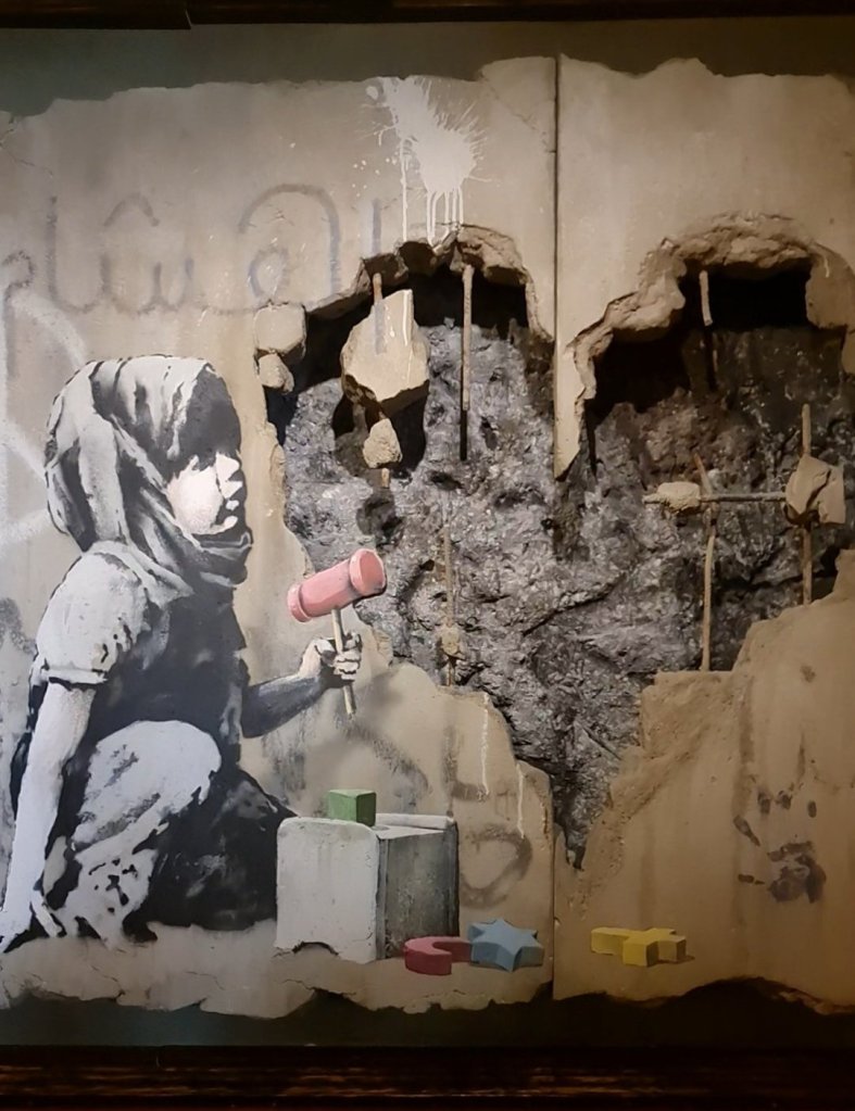 Tüm bu duyguların yoğunluğuyla yine otelin içinde bulunan Banksy’nin sergisine geçiyoruz.