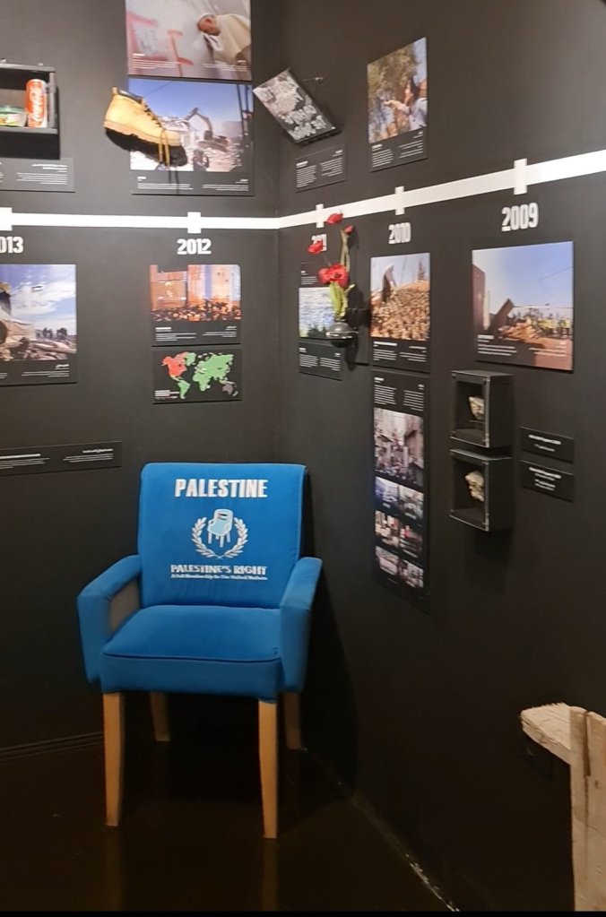 Diğer odada ise 1948’den bu yana kronolojik bir sunum bizi karşılıyor. Bazı Yahudiler’in de katıldığı çeşitli ülkelerde yapılan protestolara ait resimler bulunuyor. Evet yanlış okumadınız. Bazı Yahudiler Filistinlilere büyük haksızlık ve acımasızlık yapıldığını düşünüyor.